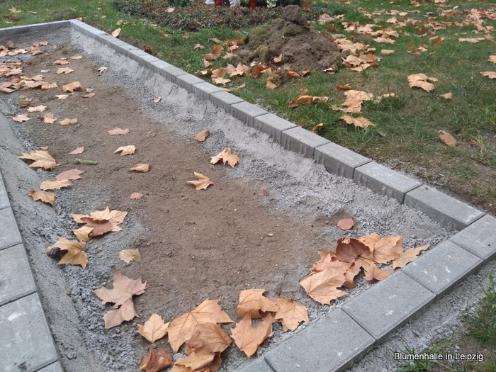 Somit war alles vorbereitet und die Umrandung konnte aus Beton und Pflastersteinen hergestellt werden.