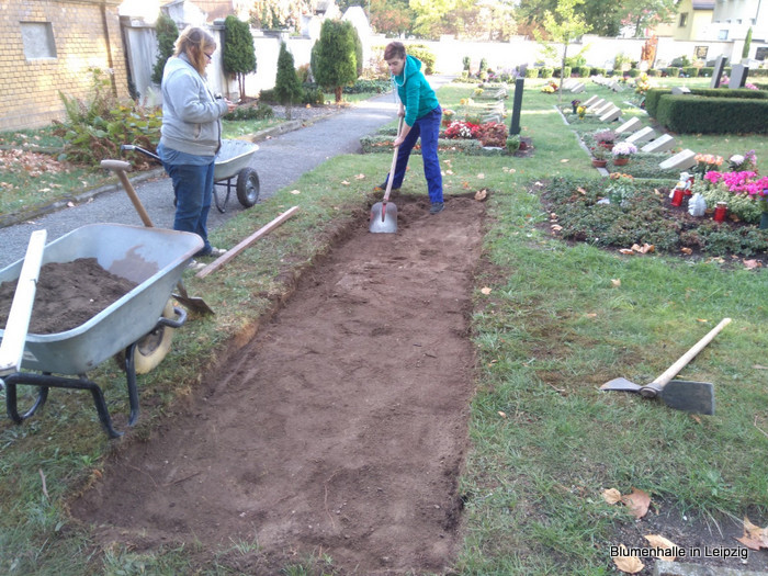 Zuerst wurde durch die verantwortliche Mitarbeiterin des Friedhof’s der Ort der neuen UGA vorgegeben.