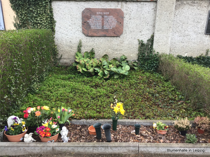 Die Anlage ist immer der „Gemeinschaft“ untergeordnet, für die Blumen gibt es einen „Ablageplatz“ und der Name steht neben dem anderen unbekannten Verstorbenen.