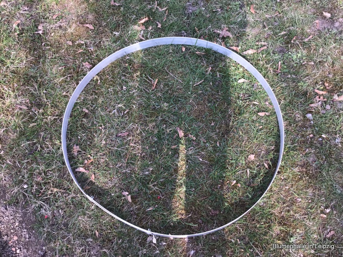 Zuerst fertigten wir einen Metallkreis aus Flacheisen an. 75 cm sollte der Durchmesser sein. Mit der Formel für den Kreisumfang konnten wir endlich mal die Theorie mit der Praxis verbinden : ).