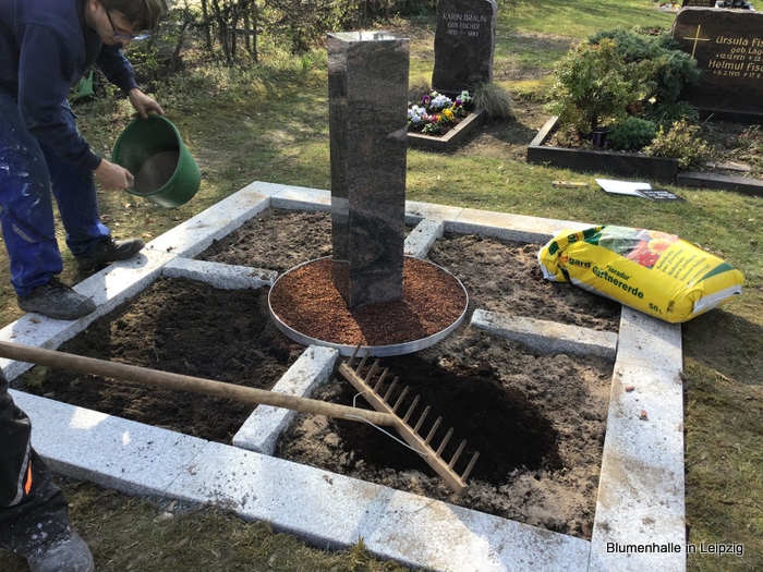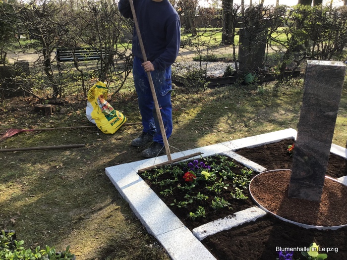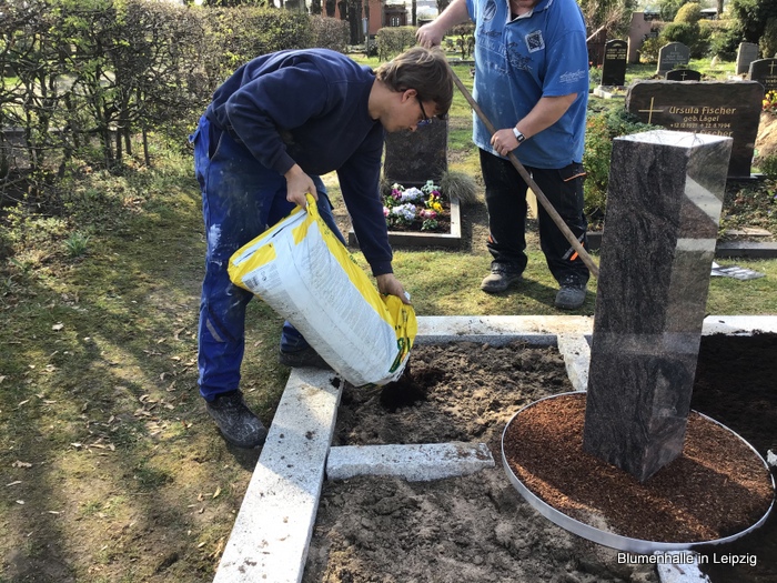 Nachfolgend lockerten wir den Boden, düngten und füllten Graberde auf.