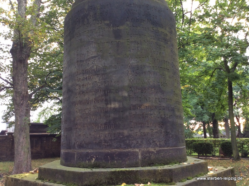 Das Ehrendenkmal gefallener Paunsdorfer im I. Weltkrieg befindet sich links neben dem Hauptweg. Die Namen der 146 Gefallenen sind den Stein des Denkmals eingemeißelt.