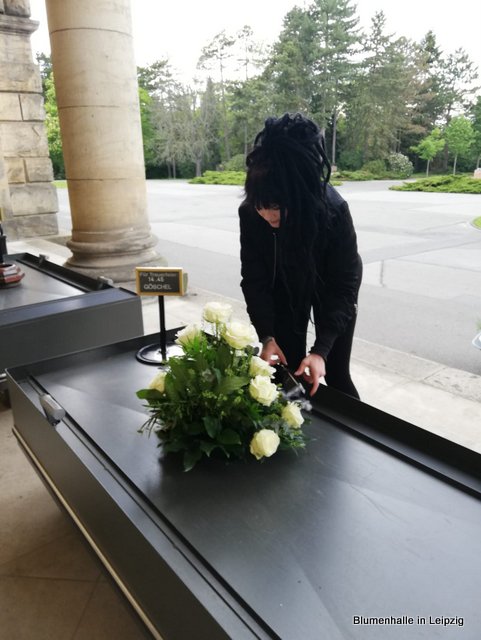 Natürlich gehört zum Praktikum die Anlieferung des Blumenschmuckes zur Trauerfeier dazu.