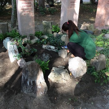 - Vor der Grabgestaltung haben die Geologen und Geophysiker des Freundeskreises verschiedene Gesteinsarten gelegt