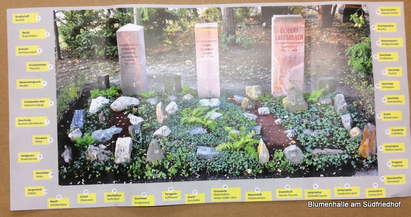 - Jeder Stein stammt von einem anderen Ort. Die Beschriftung der Gesteine soll nicht nur auf dem Papier erfolgen, sondern auch an der gemeinsamen Grabstätte von Kossmat und Lauterbach sollen Schilder dem Besucher zeigen, um welchen geologischen Fund es sich handelt.