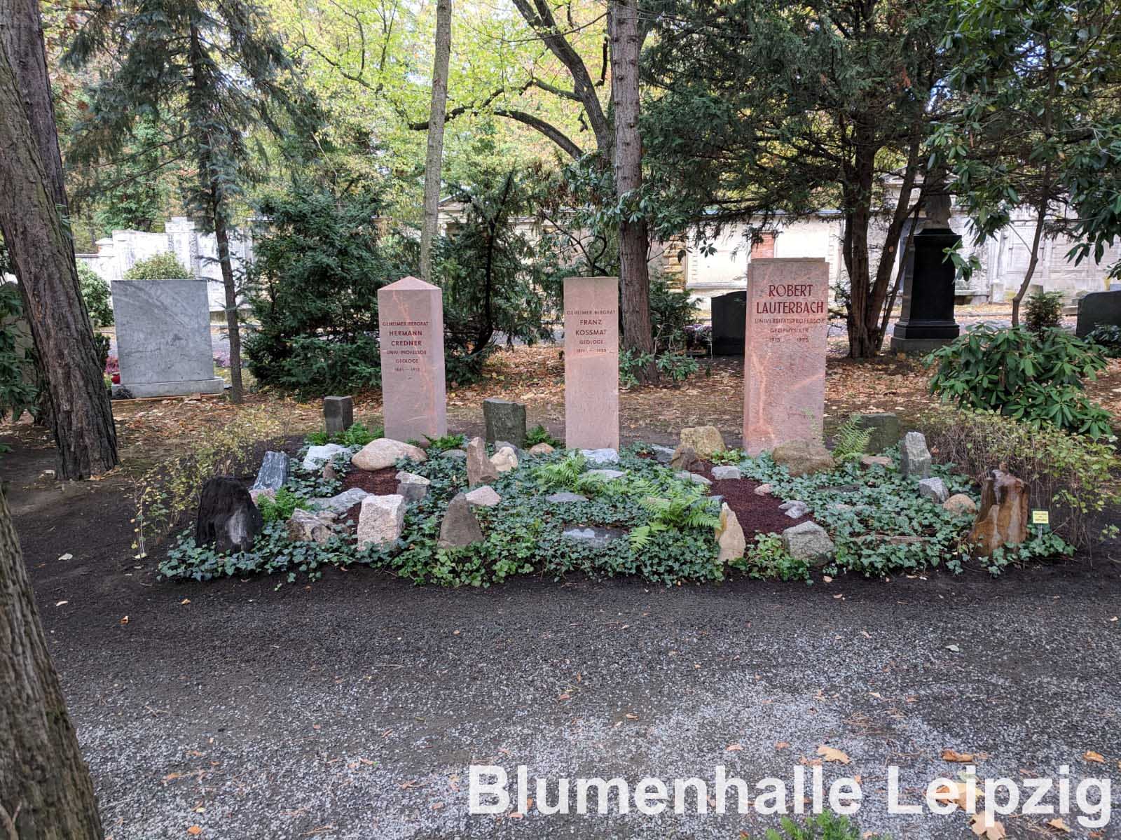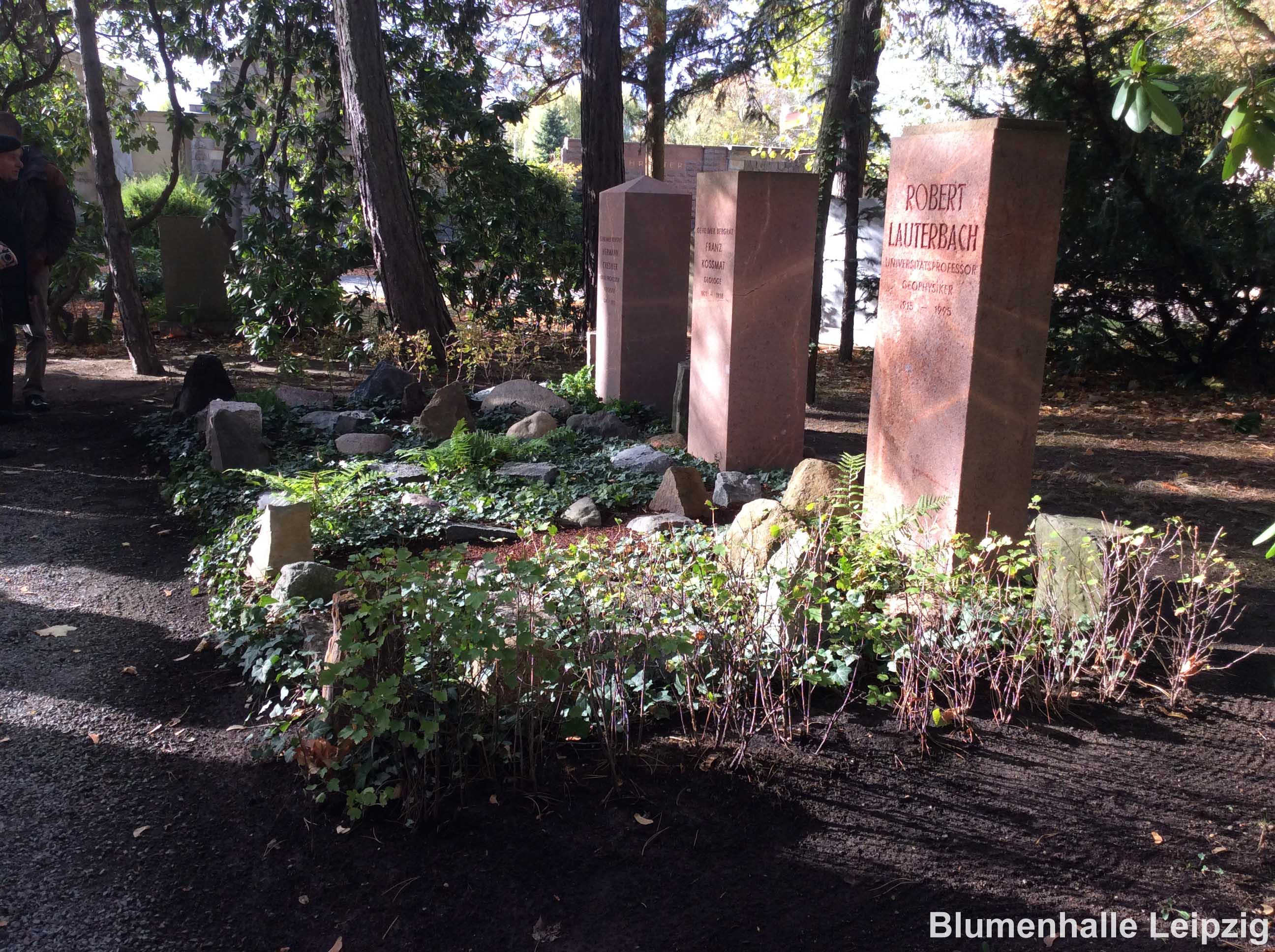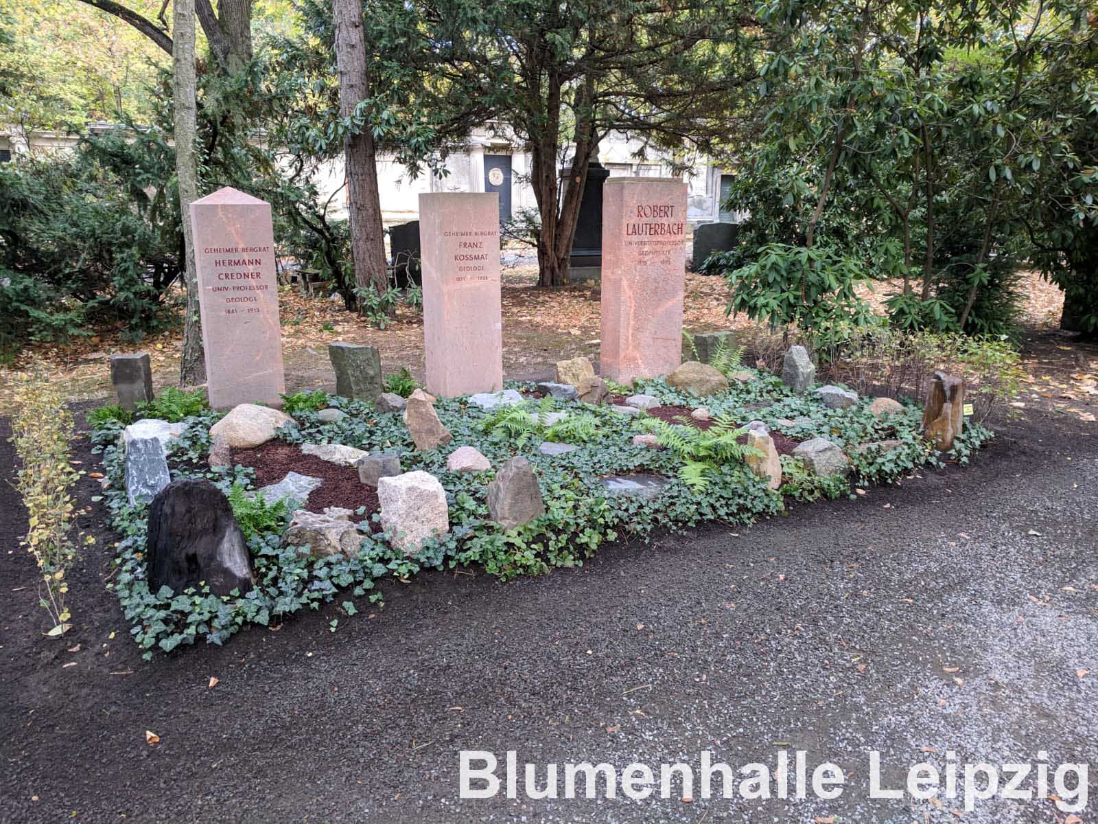 Die Blumenhalle am Südfriedhof hatte die Ehre die Grabgestaltung stilvoll umzusetzen. Durch die anschließende gärtnerische Grabpflege wird die Schönheit dieses Geologengrab bewahrt.
