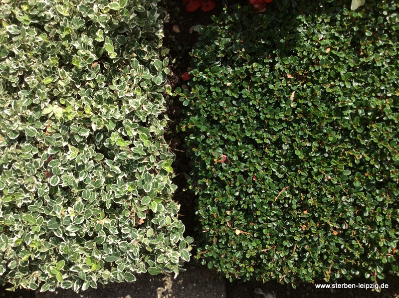 Falls sich zum Beispiel ein Grabstein mit grauer Schrift auf dem Grab befindet, ist eine Teilbepflanzung in weißgrün passend. Ebenfalls kann die Blüte des Bodendeckers auch zu den anderen Pflanzen der Grabstelle farblich abgestimmt sein.